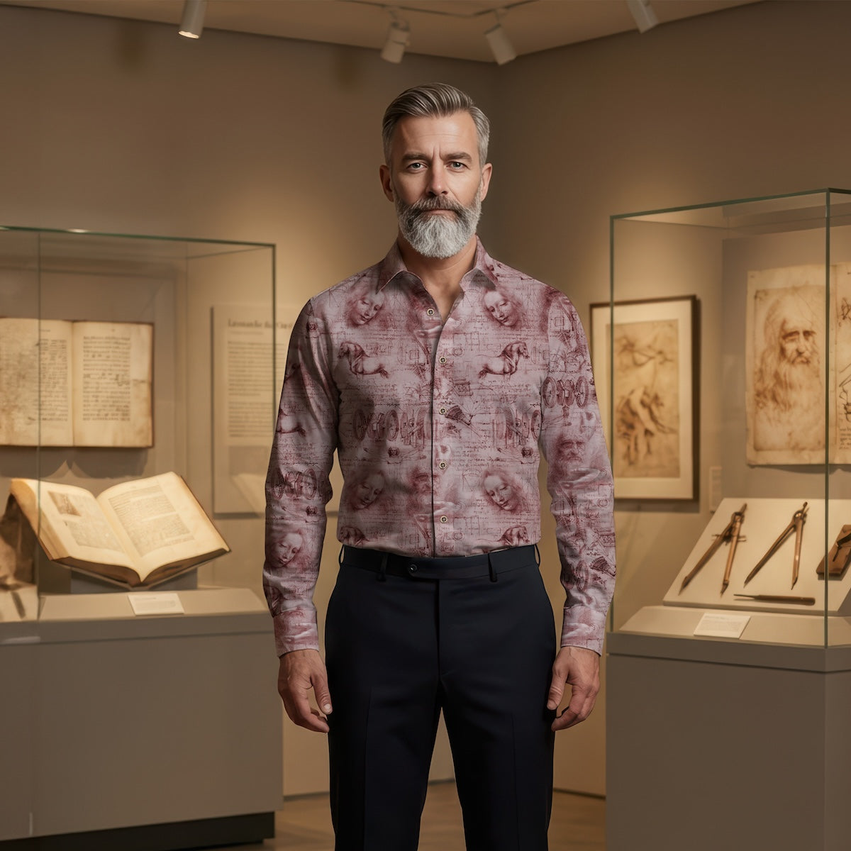 Inspiriert von den Skizzen Leonardo da Vincis vereint dieses Design Studien zu Anatomie, Maschinen und bewegten Ideen. Linien aus einer anderen Zeit erzählen noch immer von Neugier, Innovation und Vorstellungskraft. Tragen Sie ein Conversation Piece.