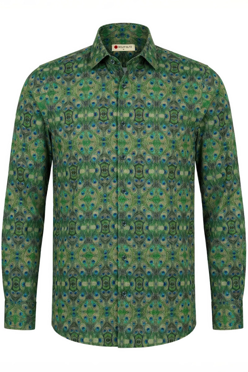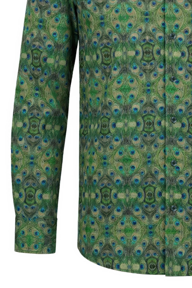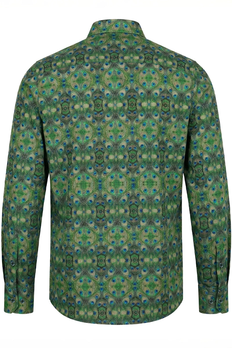 – Hemd mit stolzem Pfauenmuster.