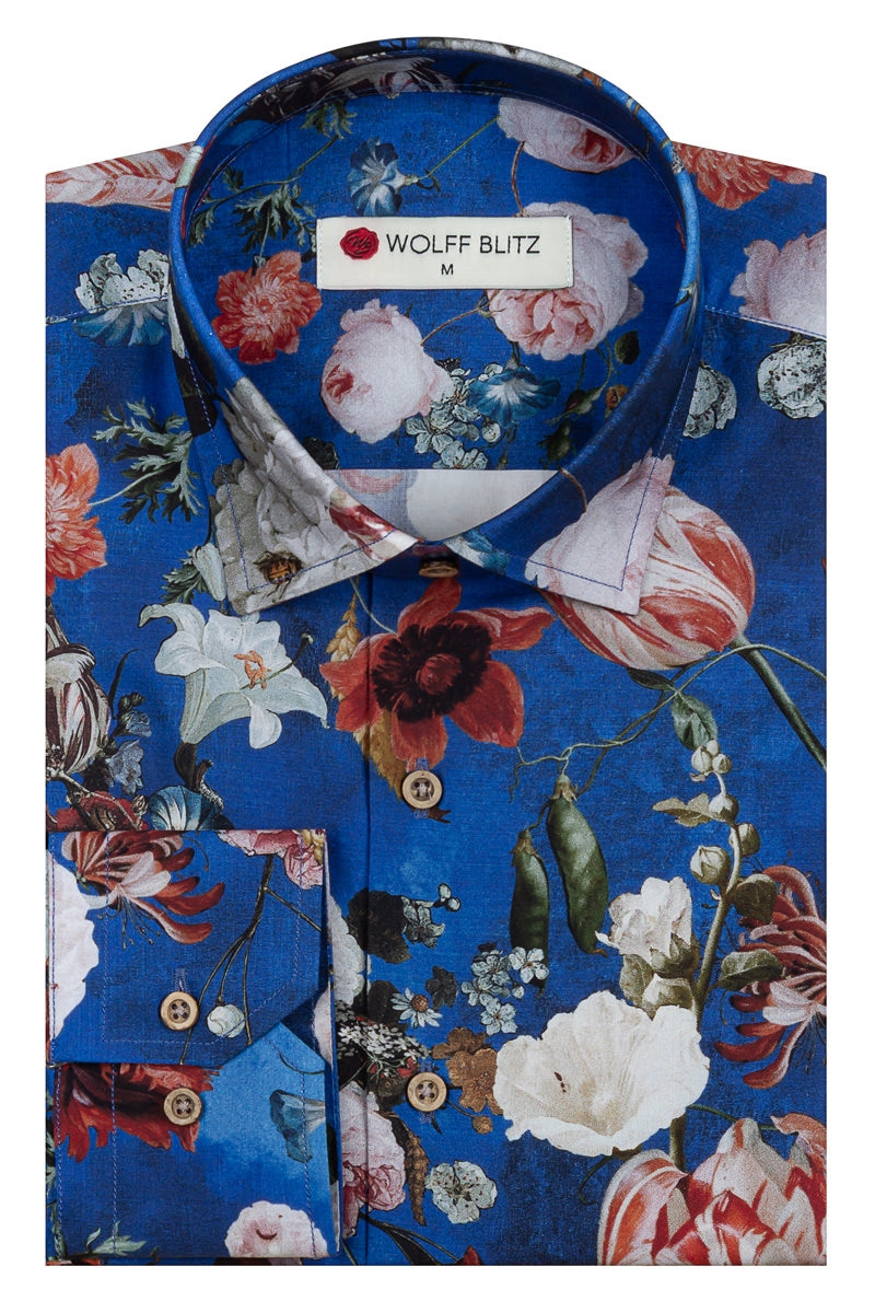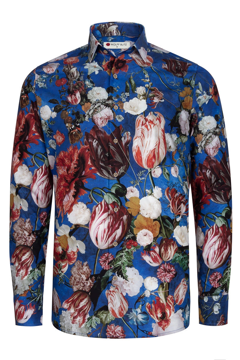 Jan Davidsz Blue Print Long Sleeve Men's Shirt