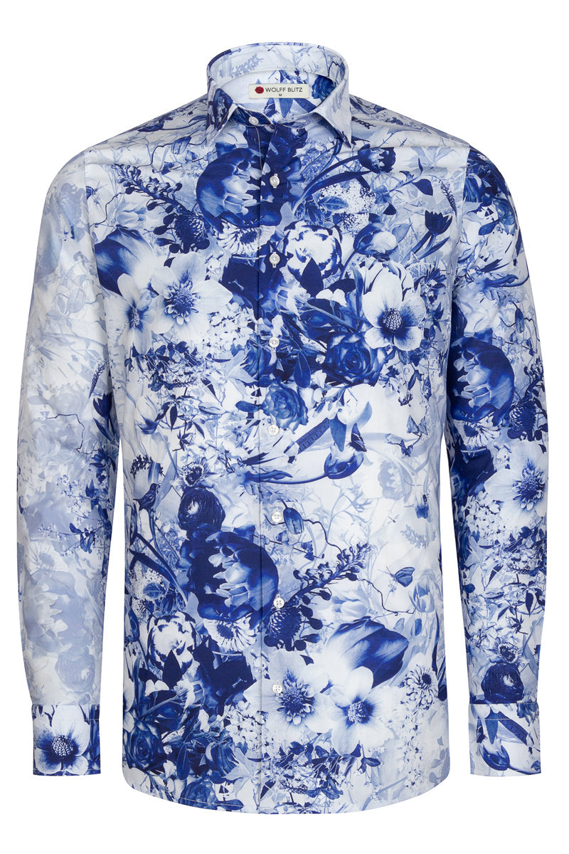 Jesper Krijgsman Delft Blue Long Sleeve Print Shirt for Men