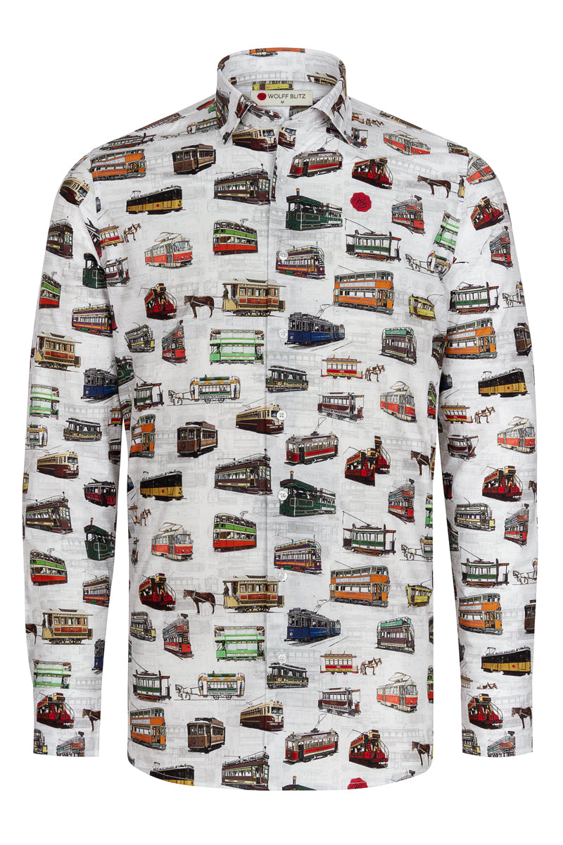 History of Trams Print Long Sleeve Shirt for Men
